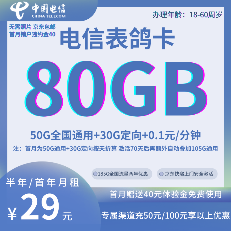 29元192G全国通用流量+0.15元/分钟(首月免费,收货地即为归属地)